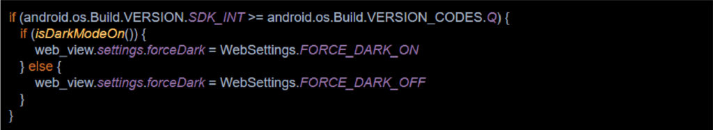 Our blog is implemented using a web page so it’s available both in the app and on our website. It’s also Dark theme enabled using dark styling in CSS, which means we can keep our custom Dark theme in our web pages. This can be enabled in your web view by adding the following code: