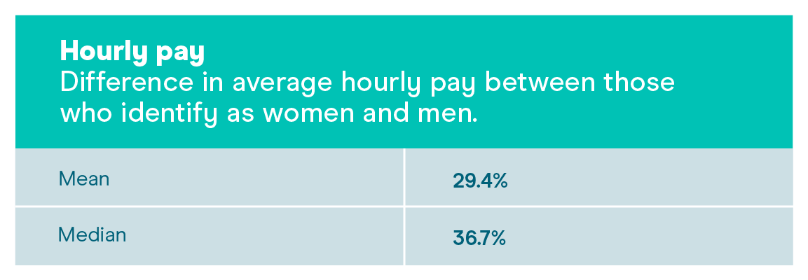 No, our gender pay gap does not mean that women are paid less than men for performing the same roles. The gender pay gap looks at average hourly pay for women and men across the company, regardless of role, seniority or performance. It is not the difference between women and men performing the same roles. We are confident that people doing the same role at the same level are paid equally, regardless of gender.