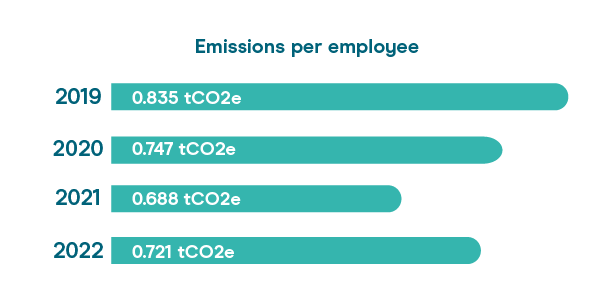 It’s great to see that despite returning to business as usual and continuing to grow as a team, we’re able to keep our carbon footprint on a downward trajectory.