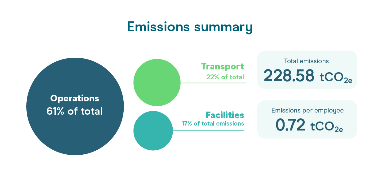 All our emissions can be broken down into three categories: operations, transport, and facilities.