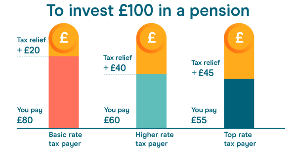 Also, all contributions into your pension are boosted by a generous tax relief government top up. Depending on your circumstances this up-front 20% (or more) boost makes saving into your pension one of the most savvy and tax-efficient investments you can make. The tax you would normally pay on income is waived if you pay this cash into your pension. If you’re a basic rate taxpayer it only costs you £80 to add £100 to your pension, or only £60 for higher rate taxpayers and £55 if you’re a top rate taxpayer. Learn more about the advantages of pension tax relief.