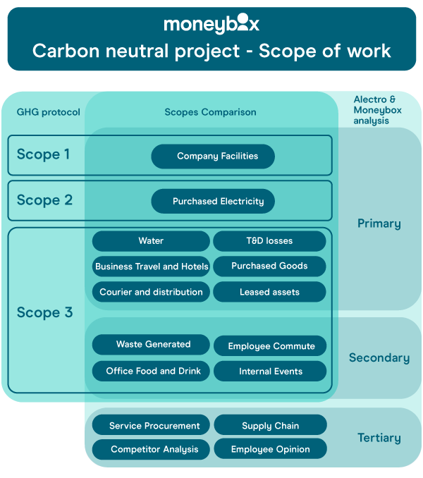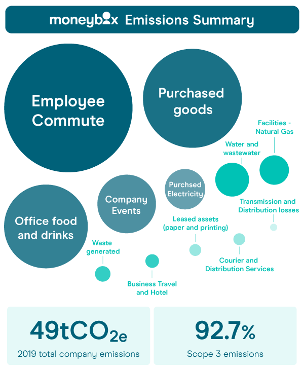Our analysis measured emissions related to everything from building facilities, work travel, to employee commuting, office coffee consumption and Moneybox social events.