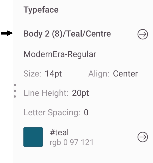 All labels in any Zeplin screen have a related style, visible on the right side of the interface: